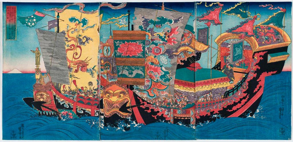 The Emperor, blinded by his desire for eternal life, granted Xu Fu’s requests: a fleet of 60 ships, an entourage of 3,000 young men and women, and the best craftsmen, farmers, and soldiers of the realm. With the fleet outfitted and provisions stocked, Xu Fu set sail from the eastern coast of China, likely departing from Langya (modern-day Lianyungang).